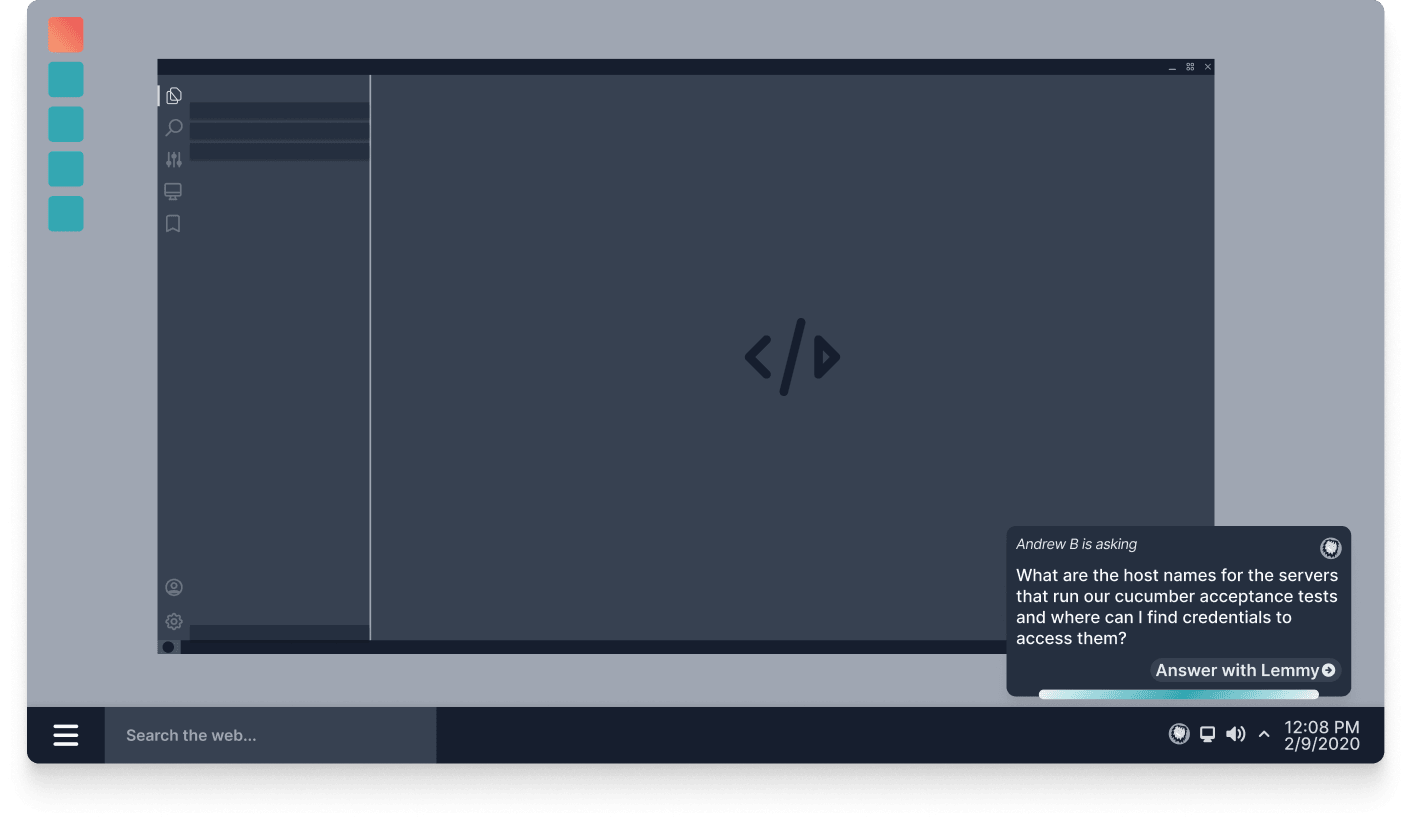 We're all human, we want things to be fast and easy. That's why Lemmy lives in your system tray and responds to a global shortcut keeping your team's knowledge front and center when you need it and out of sight when you don't.